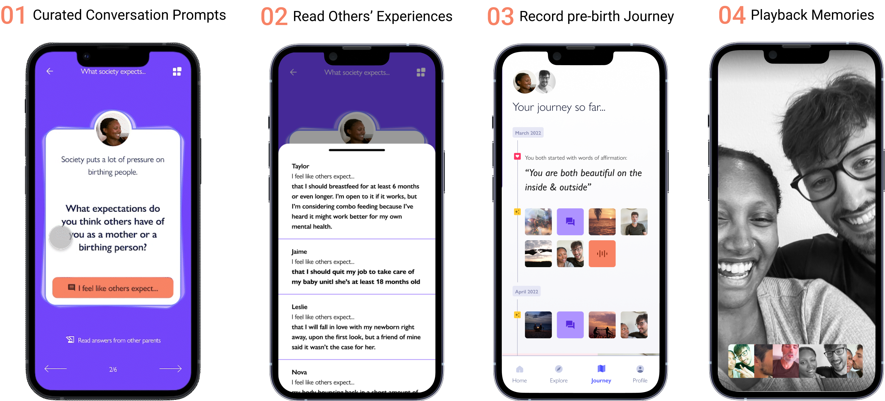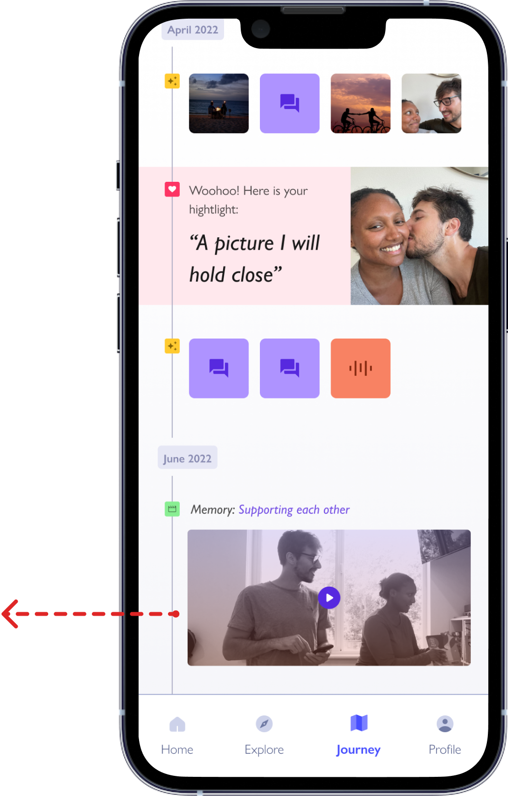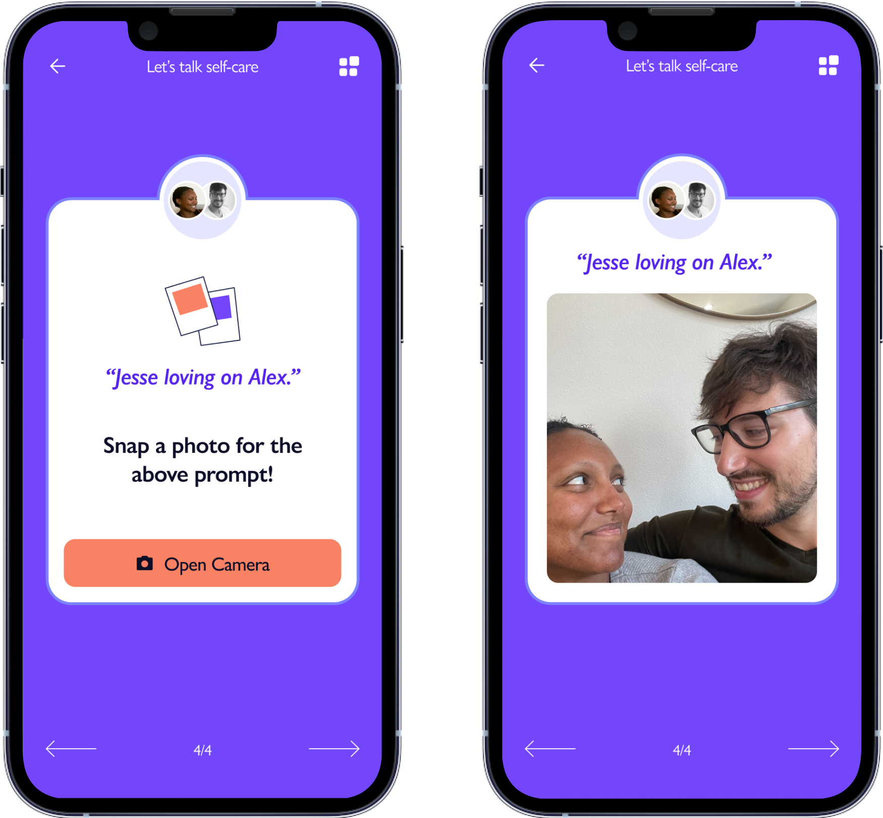 At the end of each conversation, couples are prompted to snap a photo that is logged into their Journey.