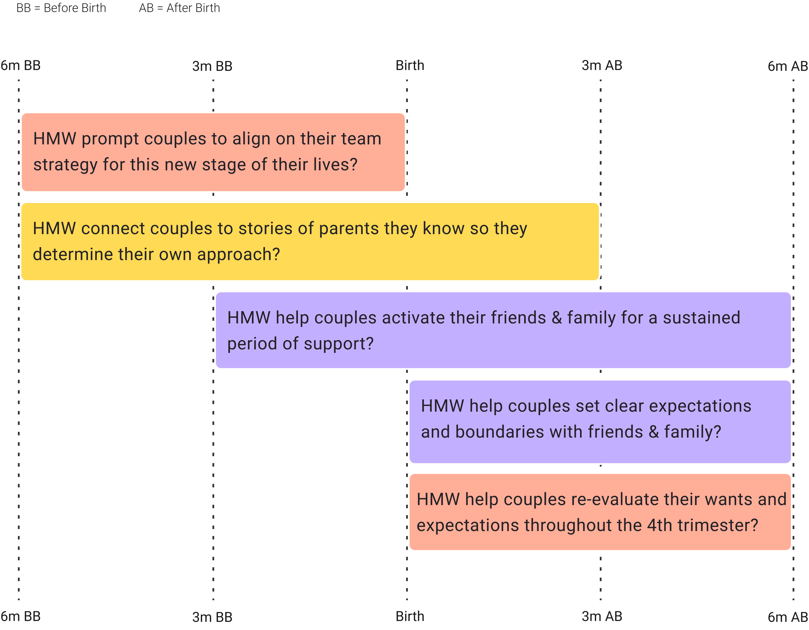 In talking to experts, we learned about the existing supports for birthing people and partners, which helped uncover gaps and highlighted opportunities to amplify what is working.